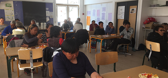 Kuummiuni Peqqissutsimut Naalakkersuisoq Agathe Fontain aamma Ilinniartitaanermut, Kultureqarnermut, Ilisimatusarnermut Ilageeqarnermullu Naalakkersuisoq Doris Jakobsen innuttaasunik ataatsimiisitsimmata imigassaq, ilinniarneq inuussutissarsiornerlu sammineqarput.